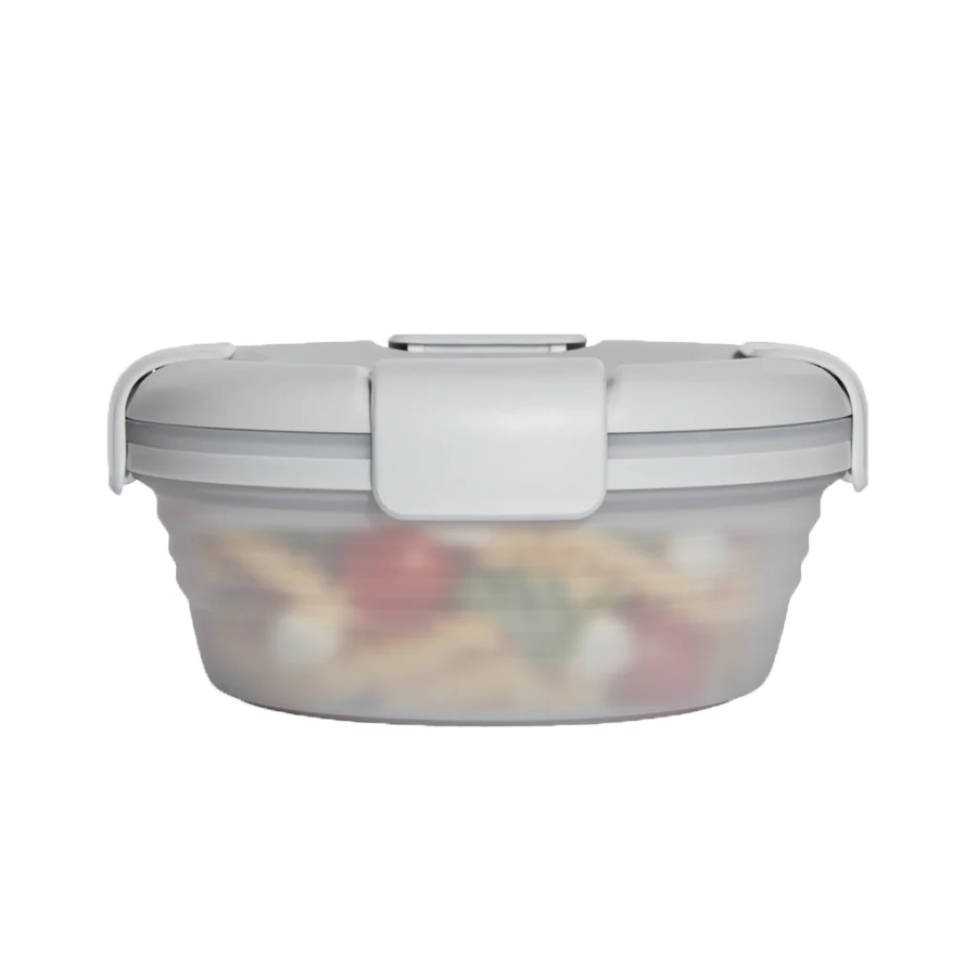 Складной и многоразовый. Крышка с фиксаторами закрывается герметично, поэтому ваш обед не вытечет из ланч-бокса. Удобно брать с собой готовое блюдо или просто перекусы. Подходит для использования в микроволновой печи, поэтому вам не составит труда разогреть ваш обед, не перекладывая его в тарелку. А после того, как поели, вы легко сложите его. В сложенном виде он занимает мало места и его можно положить в сумочку, рюкзак. Помогает Вам сократить использование одноразовой пластиковой посуды, которая не перерабатывается и после использования попадает на свалку, загрязняя окружающую среду.